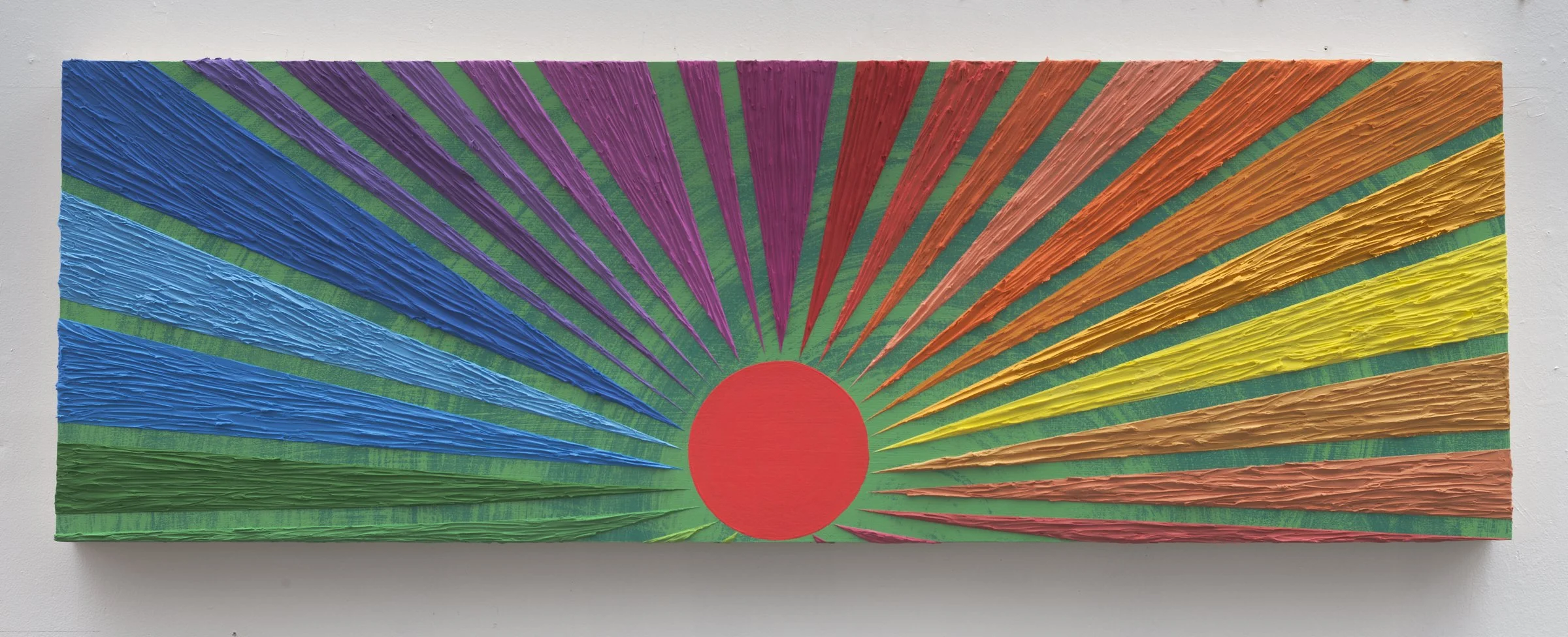 Conceived as a kind of solarium, a place of light, warmth, and renewal, the installation transforms the waiting space into an environment of perceptual restoration. Through layered acrylic painting, vibratory color relationships, and rhythmic botanical forms, the works explore color as a living force capable of awakening the senses and calming the mind.